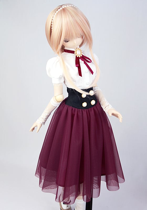 【期間限定オーダー】DDサイズ ハイウエストチュールミディスカート【ダークワイン】